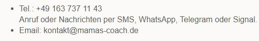 Sie können mich anrufen, mir eine Nachricht oder eine Email schreiben: